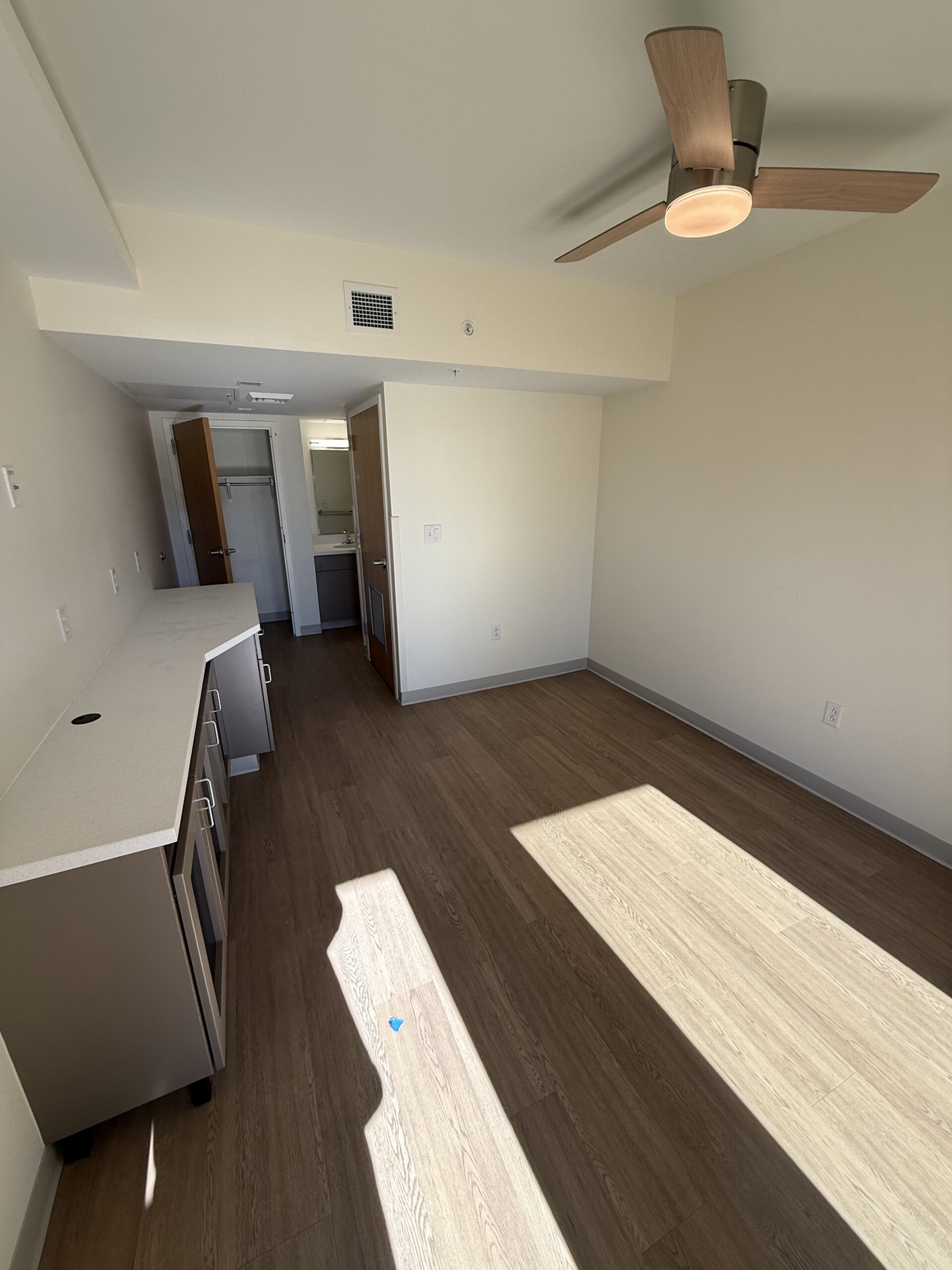 Additional design elements include each finished room will have a counter space for a microwave and an under-counter refrigerator.